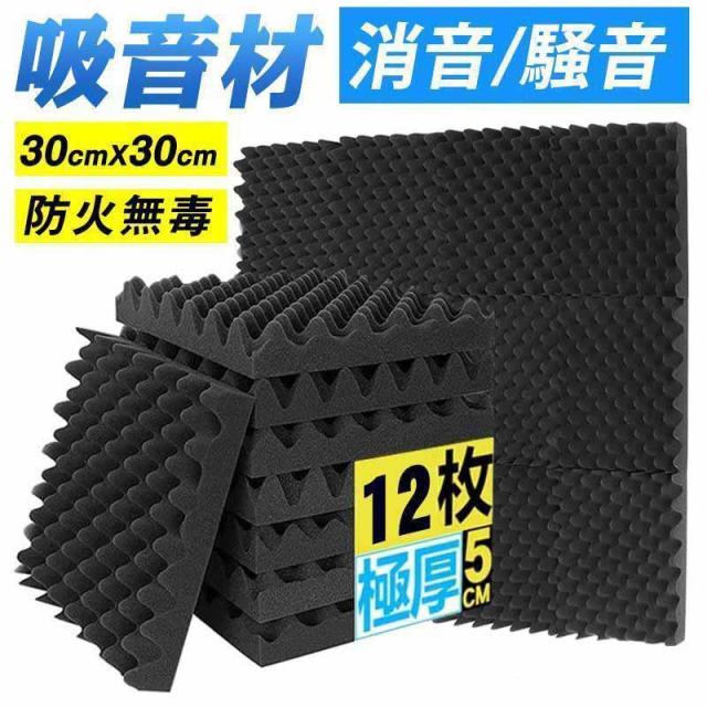防音材 防音シート 遮音シート ウレタンフォーム 防音パネル 吸音対策 スポンジ 吸音材 緩衝材 クッション材 波 難燃 断熱 12枚 30*30*5cm 極厚