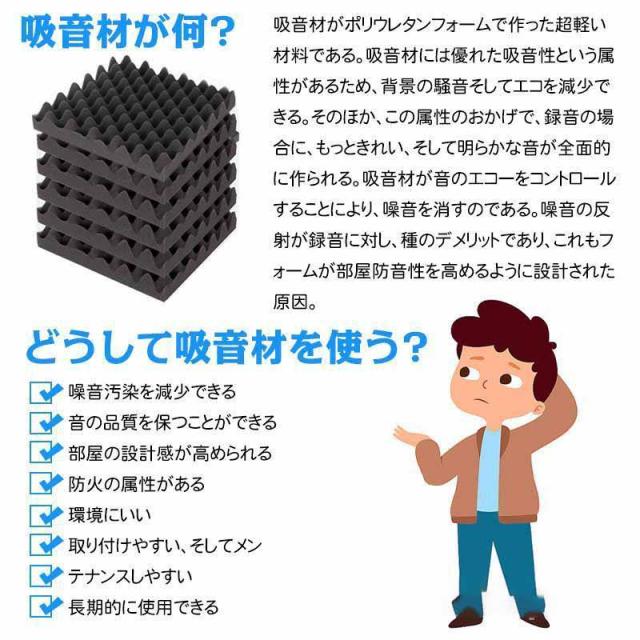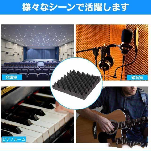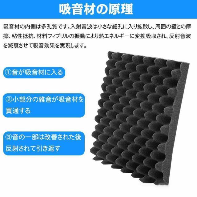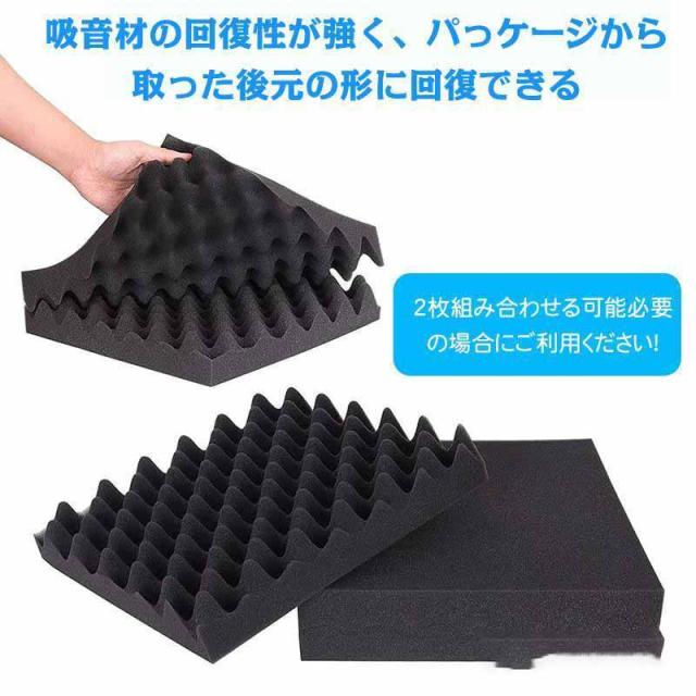 【効果について】(1)ウェッジ形構造及びピラミッド形構造で要らない反響音・残響音が減少、吸収され、吸音効果に優れています。(2)耐冲撃で高反発で変形しにくくて、衝撃からしっかり守ります。(3)断熱材料としても良い、多孔質なウレタンフォームの中に空気があり、外からの熱量を遮断し、同時に室内の温度を保ちます。