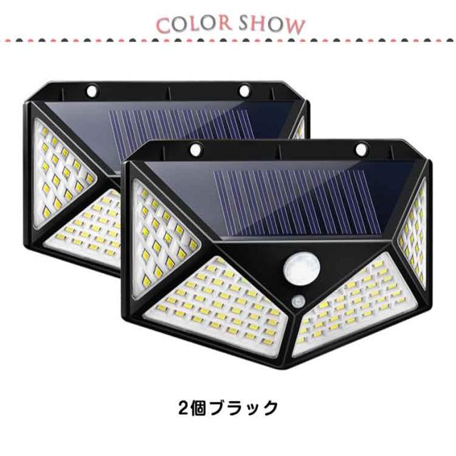 人感センサー 100LED 屋外照明 屋外 ソーラーライト 50平方メートル照明 三つ知能モード センサーライト 2個セット 2個セット 防塵 自動点灯 太陽光発電 玄関ライト LEDライト 防水 防犯ライト 屋外 庭 玄関