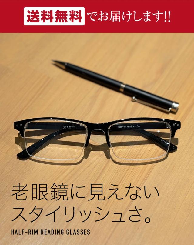 送料無料 老眼鏡 DR-117PN ブラック スクエアタイプ 男性用 女性用