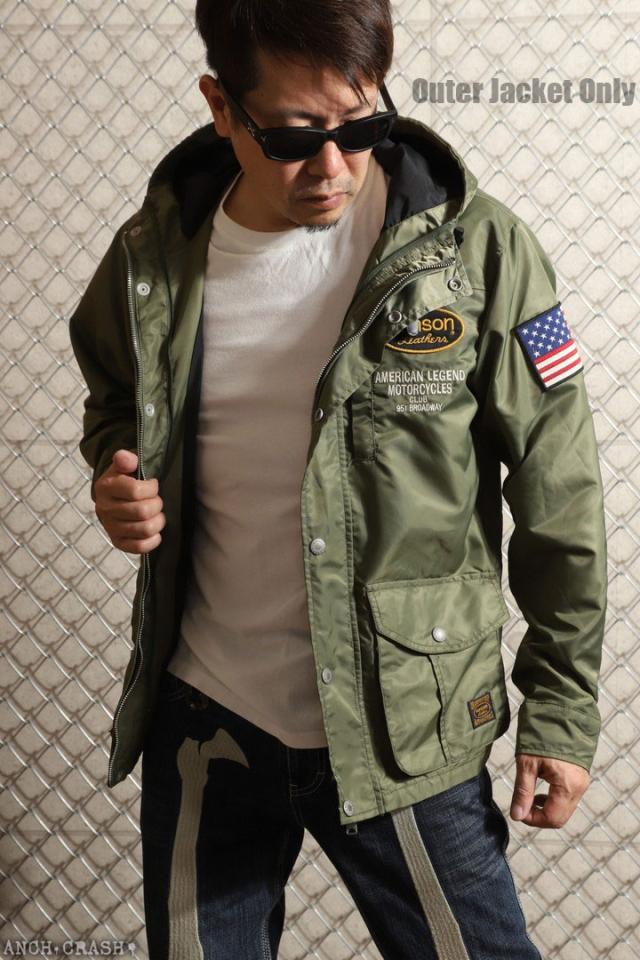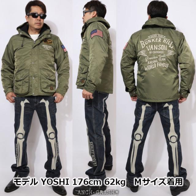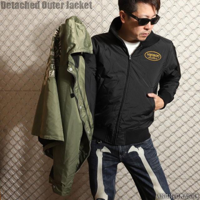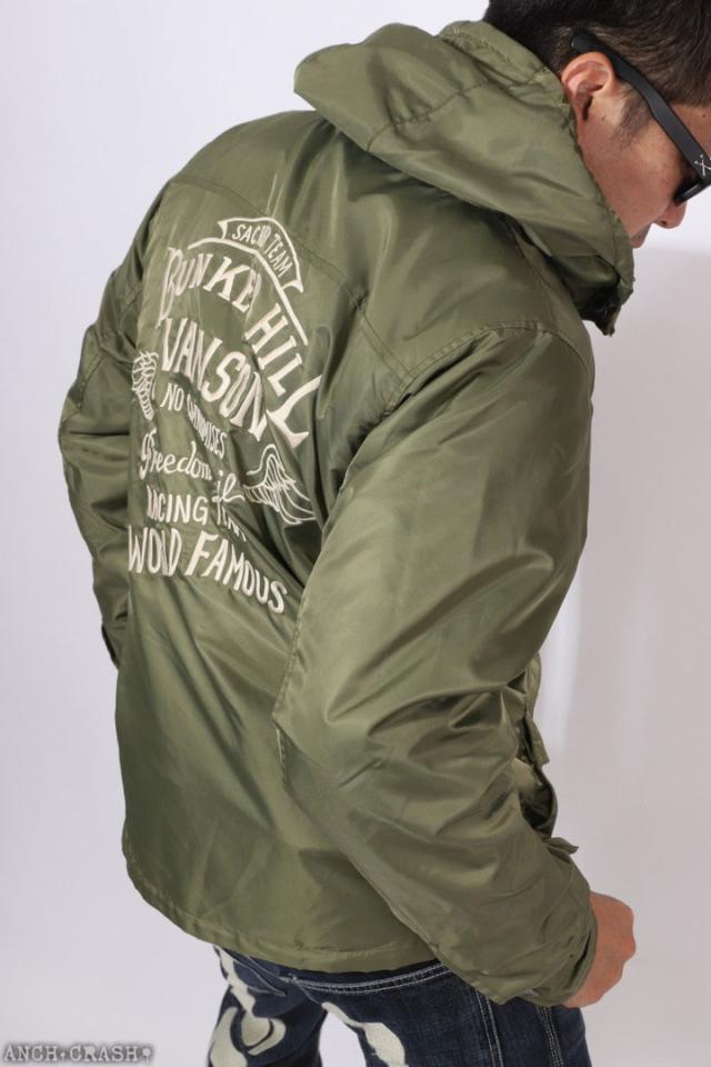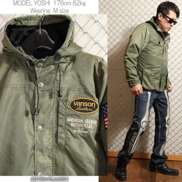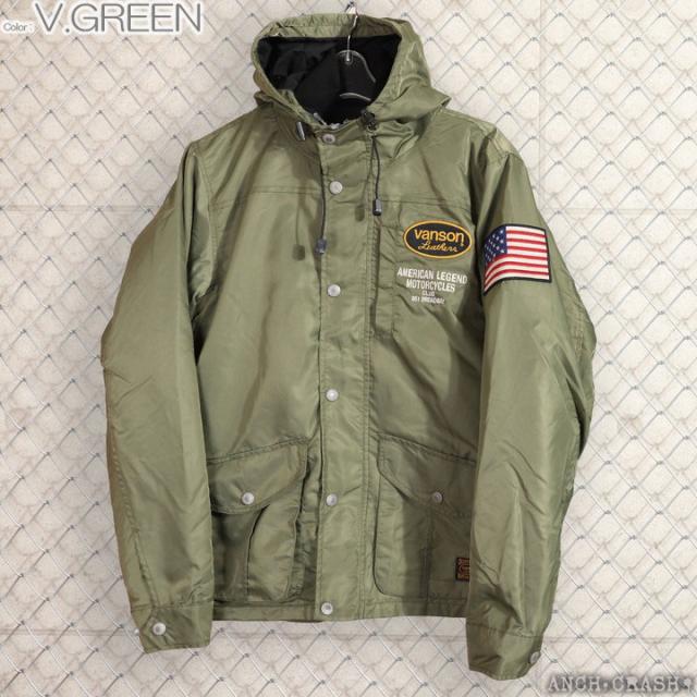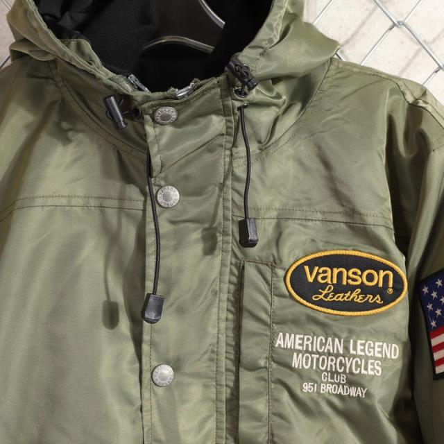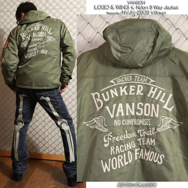 VANSON ロゴ&ウィング ナイロン 3WAY ジャケット (NVJK-2503) 【送料無料】Vグリーン バンソン 刺繍 ワッペン