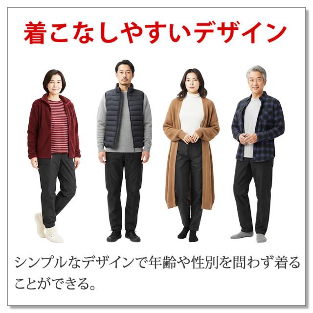 シンプルなデザインだからルームウェアとしても使え、年齢や性別を問わず着こなしやすい万能アイテム。