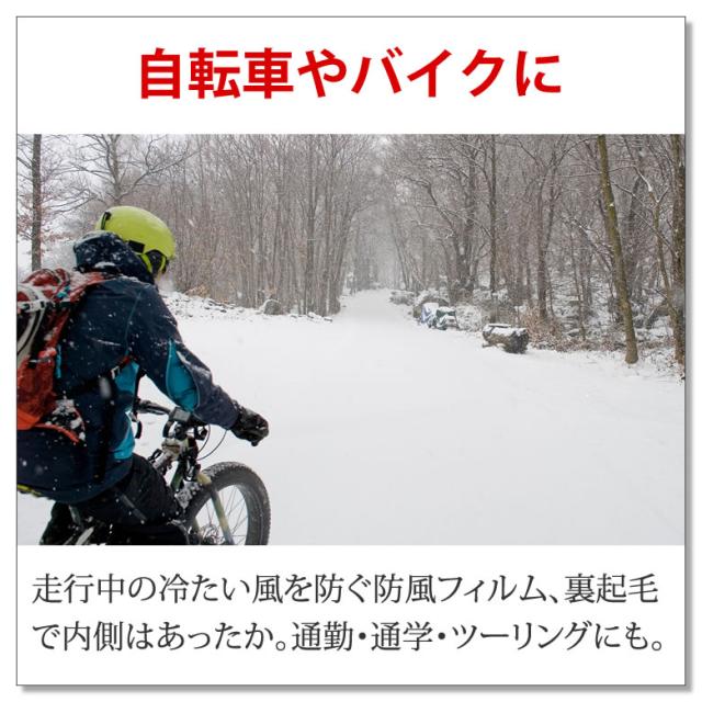 防風構造と高い保温性で、キャンプ・釣り・自転車・ウォーキングなどのアウトドアにも最適。