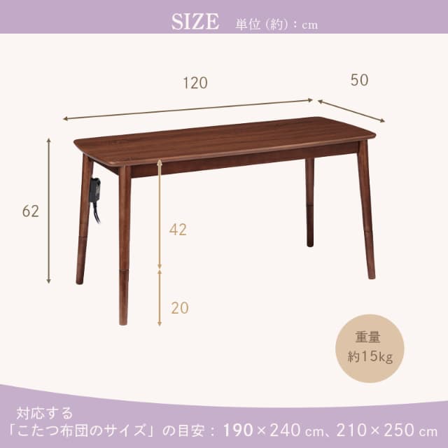 対応するこたつ布団サイズ目安:長方形用こたつ布団「190×240cm」「210×250cm」