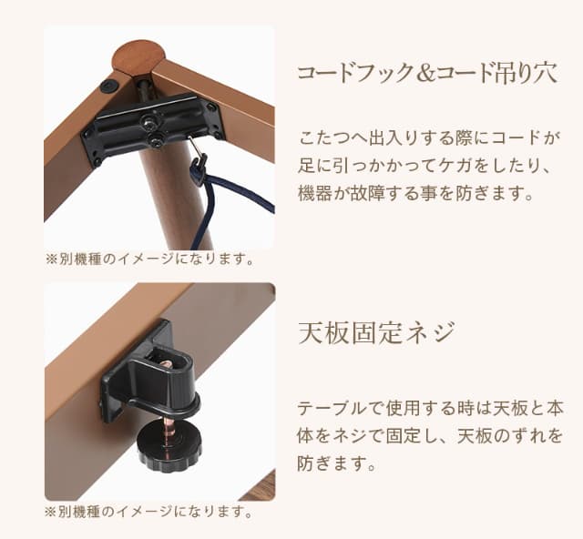 ・天板固定ネジ付きで、テーブルとしてご利用時に天板を固定できます。