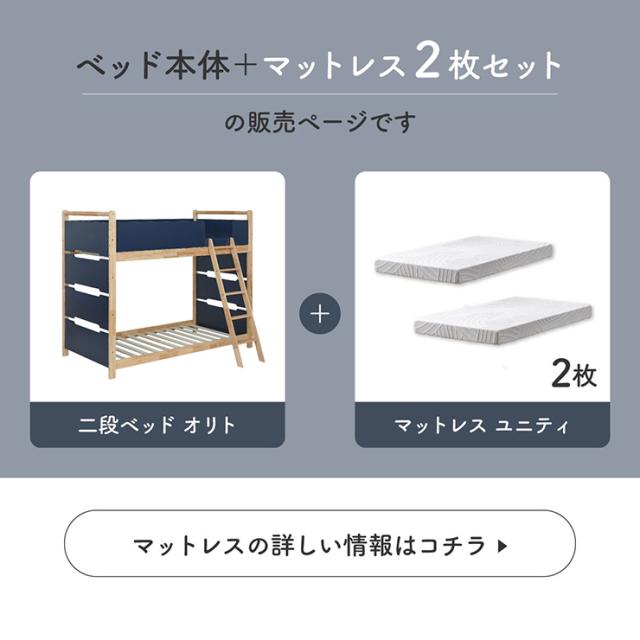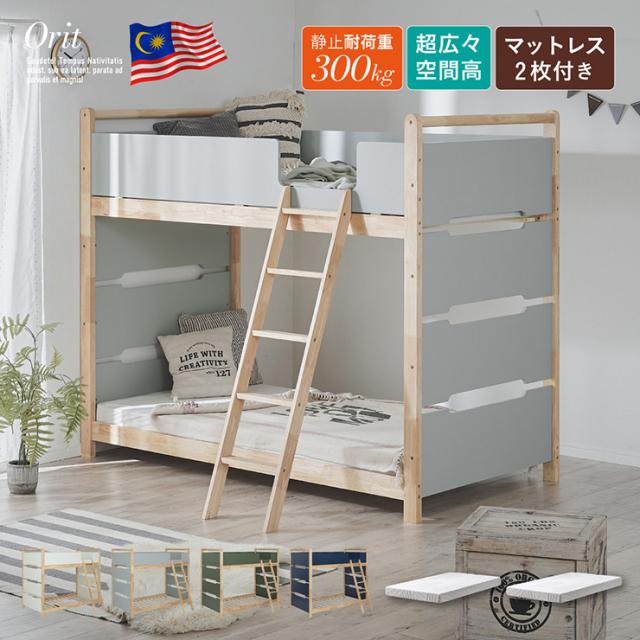 二段ベッド 木製 天然木 シングルベッド マットレス 2枚セット Orit(オリト)+Unity(ユニティ) 4色対応 2段ベット すのこベッド おしゃれ 敷布団 はしご付き 大人用 子供用 耐荷重300kg 子供部屋 北欧