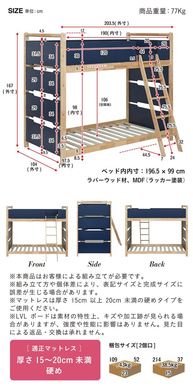 ベッド:W203.5 x D104 x H167cm(77kg)