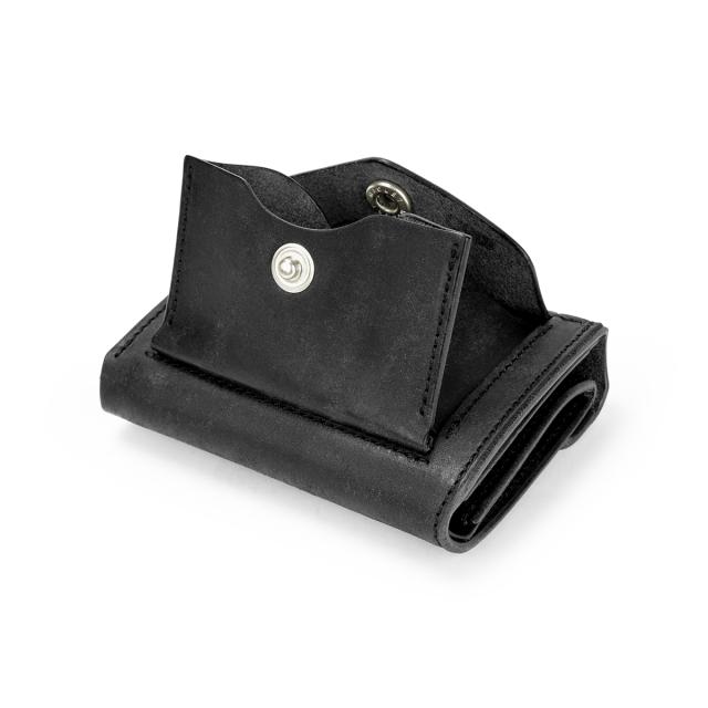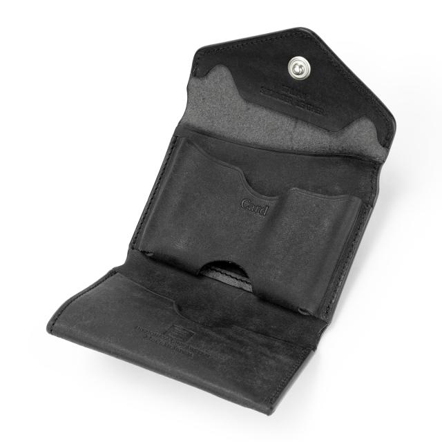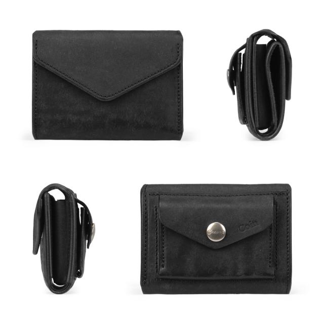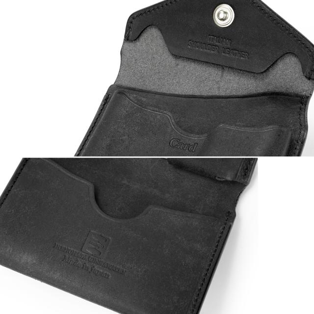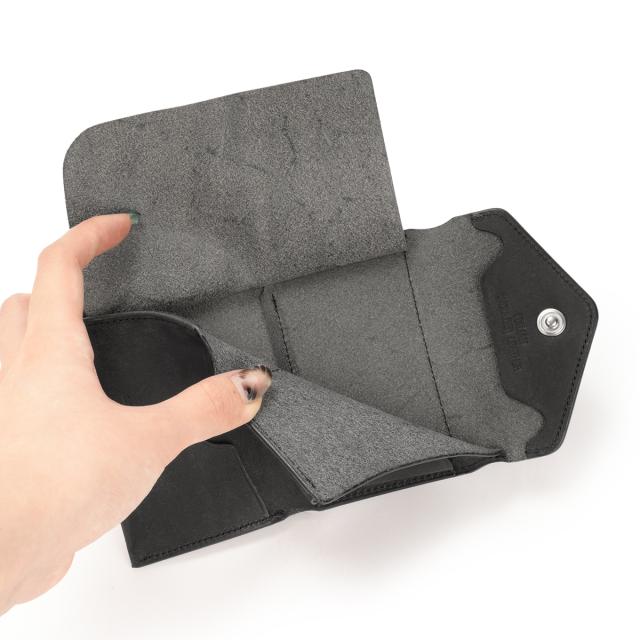 | Cramp|Italian Nubuck Leathe コンパクトウォレット Cramp 定番のカードケースサイズ コンパクトウォレットのプエブロレザーバージョン。 長財布並みの収納力とコンパクトさは変わらずにフラップ形状をややシャープに、コインフラップも全面のデザインに合わせて形状を変更するなど細かなアップデートを施しています。 フタ裏の札抑えは若干短く変更。収まりが良くなりました。 また、本体のホックはオス / メスの向きを入れ替え、長く使用した際の隠しホックのアタリが出難いようにしています。 コインケースのフラップも表に合わせてシャープな形状に変更。 より統一感のあるデザインに。コインは 20 枚以上収納可能です。 |