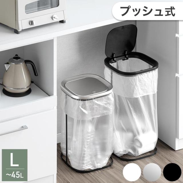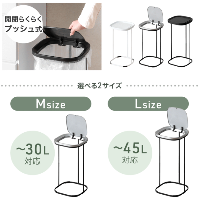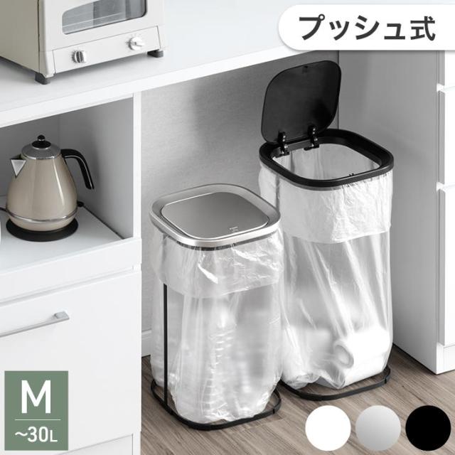 【新発売プライス!12/15迄】蓋付きゴミ箱 プッシュ式 《M:30L》 スリム キッチン コンパクト 省スペース ゴミ袋ホルダー ゴミ袋スタンド ダストボックス ゴミ箱 ごみ箱 フレーム 分別 ふた付き 蓋つき 30L 30リットル