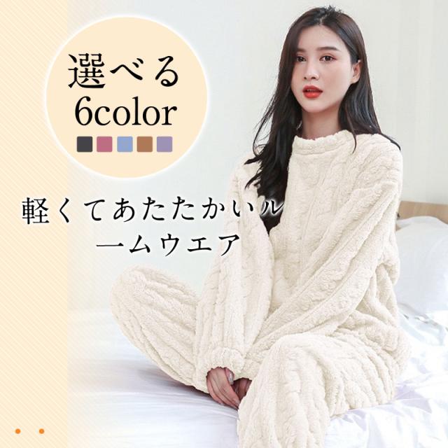 パジャマ レディース ルームウェア 上下セット 秋 冬 もこもこ 部屋着 長袖 リラックス 厚手 寝間着 あったか 可愛い 長ズボン ふわふわ