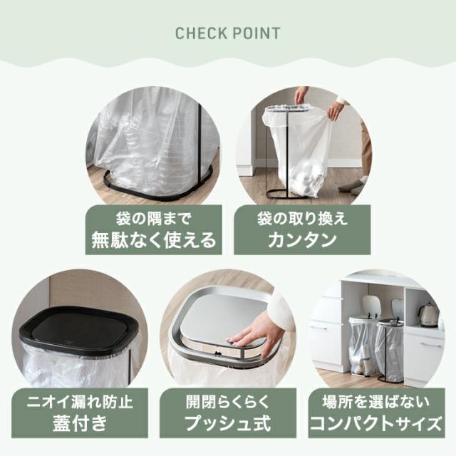 蓋付きゴミ箱 プッシュ式 《L:45L》 スリム キッチン コンパクト 省スペース ゴミ袋ホルダー ゴミ袋スタンド ダストボックス ゴミ箱 ごみ箱 フレーム 分別 ふた付き 蓋つき 45L 45リットル