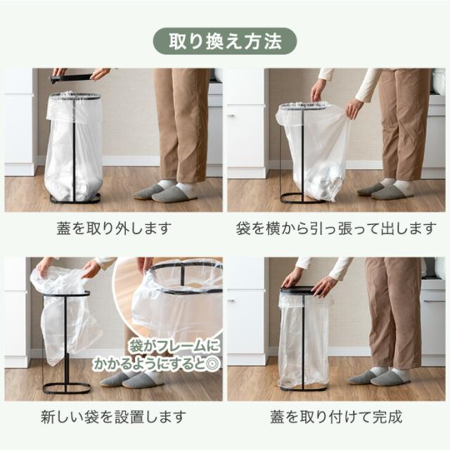 蓋付きゴミ箱 ごみ箱 ゴミ箱 フタ付き 蓋付き ダストボックス ゴミ袋ホルダー 枠だけ ペール ペットボトル 空き缶 ゴミ袋 台所 キッチン カウンター シンプル おしゃれ 黒 白 シルバー