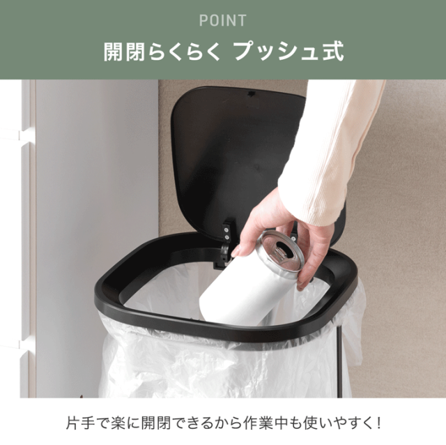 ・片手でラクラクゴミ捨て 開閉プッシュ式