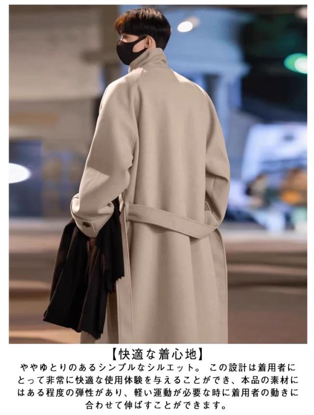 ビズネスコート コート 防寒 ロングコート ソフト 無地 冬用 厚手 カジュアル コート アウター 男性用 メンズ 保温性 高級感 暖かい 防寒防風 アウター 無地 ベルト付き 折り襟 ビジネス 通勤通学 父家族へのプレゼント