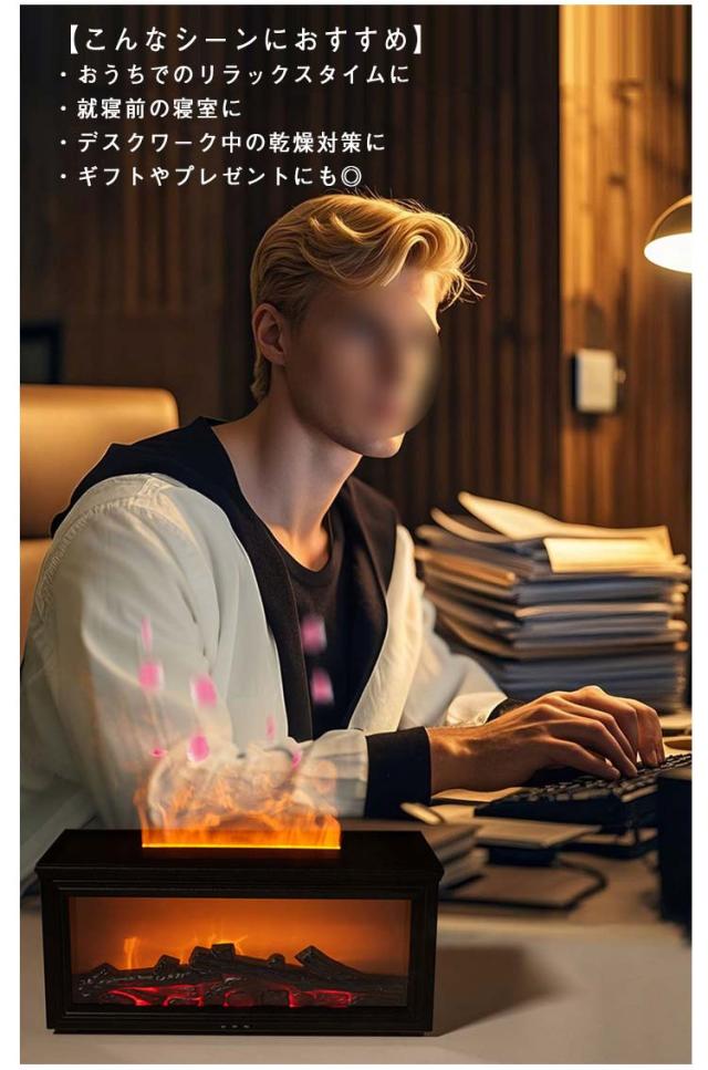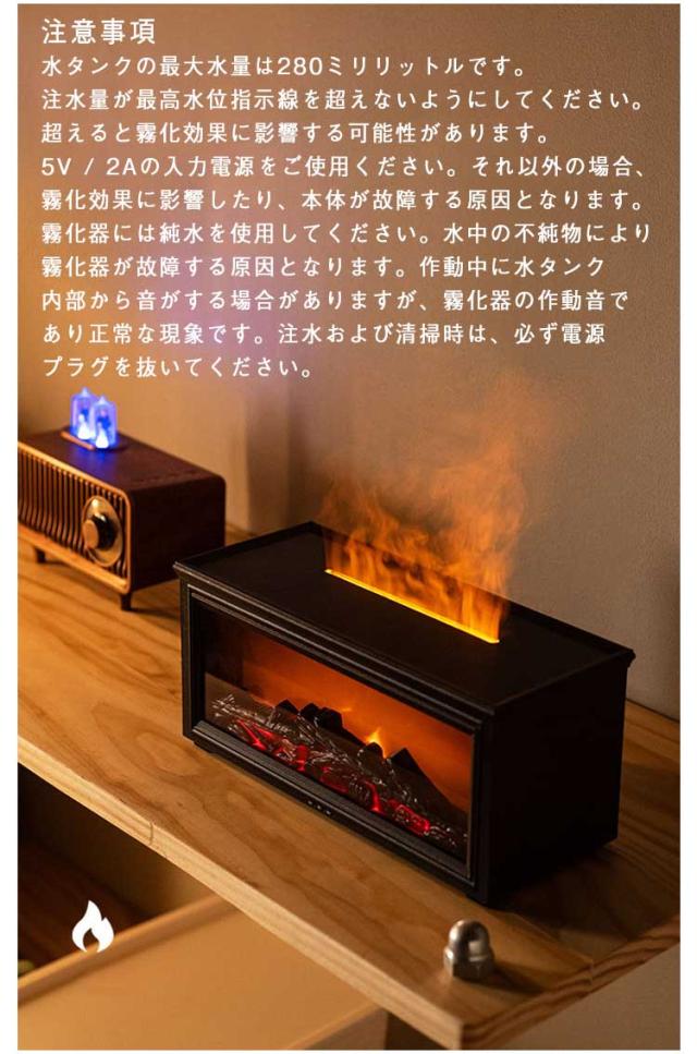 - エアコンや暖房を使うと空気が乾燥しますが、これを使うと明らかに快適さが増します。LED炎の暖かい光は、見ているだけで温もりを感じさせてくれます。