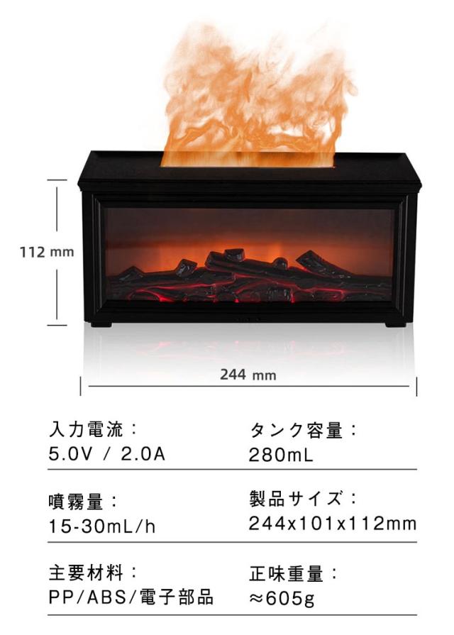- 加湿効果が優れているだけでなく、LED炎が作り出す雰囲気も満点です。冬にデスクに置けば、実用的で気分も明るくなります。