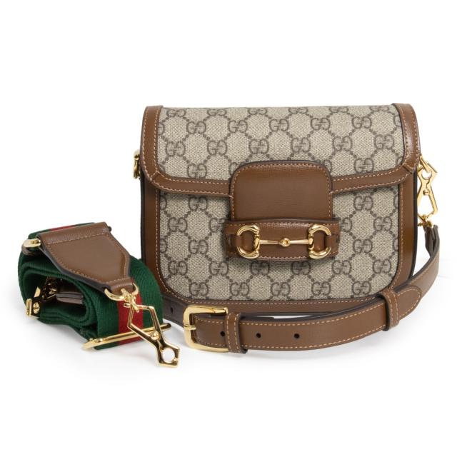 【コメント】 2種類のショルダーストラップによって表情をアレンジできる、GGスプリームキャンバスの『グッチ ホースビット 1955』ミニバッグ。レザーのトリムと同色のレザーストラップとウェブ ストライプのストラップが付いており、気分によって付け替えて楽しめます。