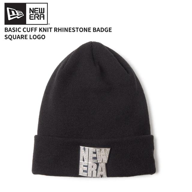 ニューエラ メンズ ニット帽 ビーニー レディース NEW ERA ベーシック カフニット ラインストーン Rhinestone Badge スクエアロゴ ブラック 秋 冬 14670022