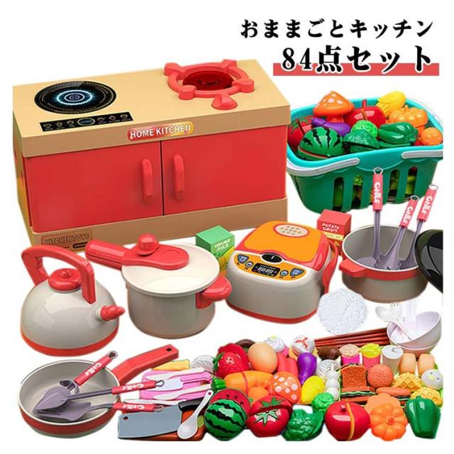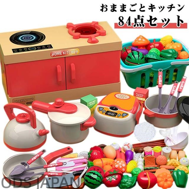キッチン用具 食材 おままごとセット 84点セット 野菜 フルーツ 食器 調理器具 子供 ごっこ遊びトイ 料理 ままごと 4歳 おもちゃ 5歳 3歳 おままごとセット 6歳 知育玩具 誕生日