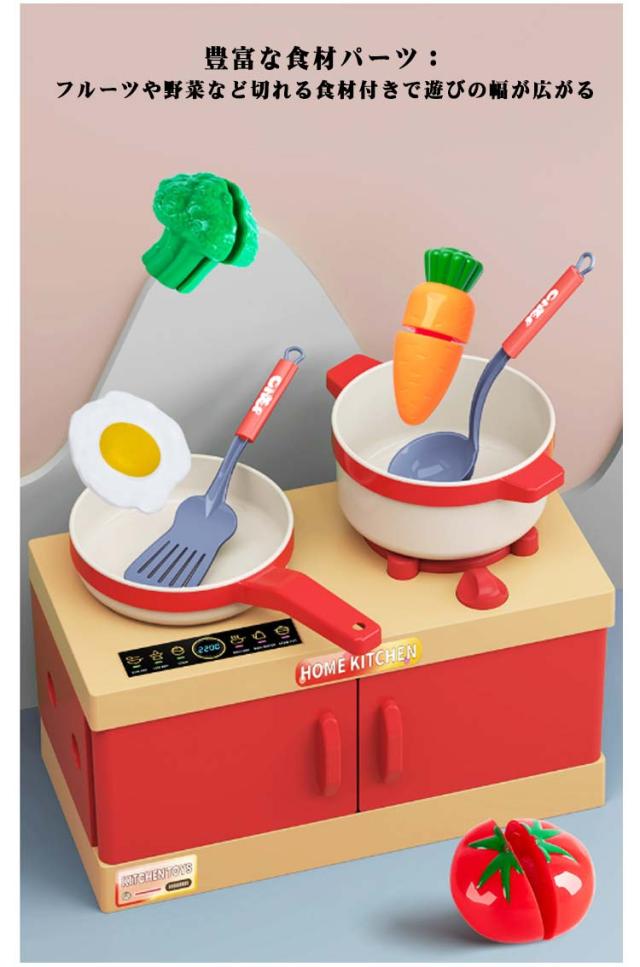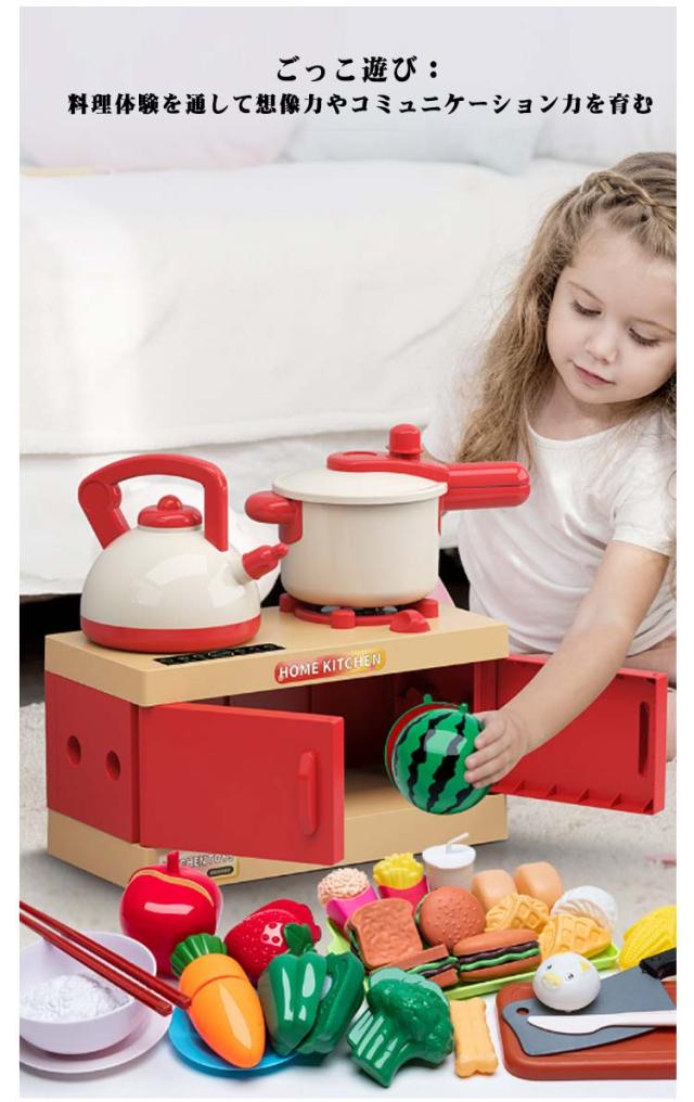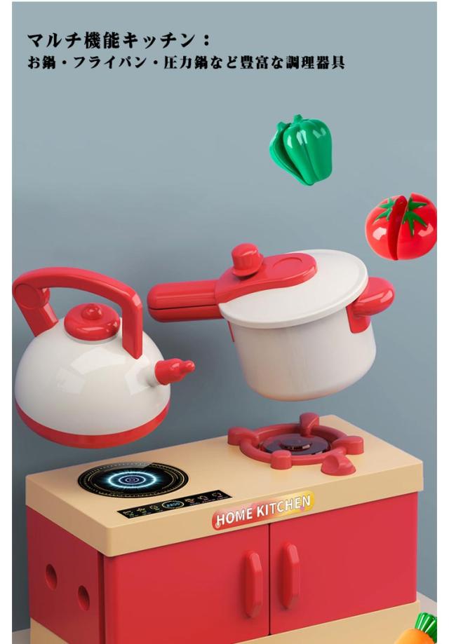 | おままごとキッチン 84点セット マルチ機能キッチン:お鍋・フライパン・圧力鍋など豊富な調理器具 リアル体験:IHコンロ風パネルやコンロが本格的で楽しい ごっこ遊び:料理体験を通して想像力やコミュニケーション力を育む お片付け楽々:コンロがそのまま収納箱に変身、片付け習慣が身につく 豊富な食材パーツ:フルーツや野菜など切れる食材付きで遊びの幅が広がる | |
