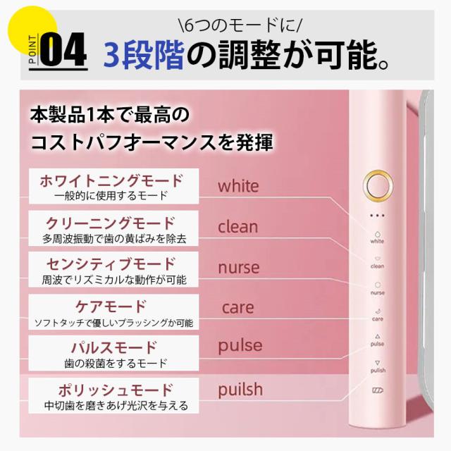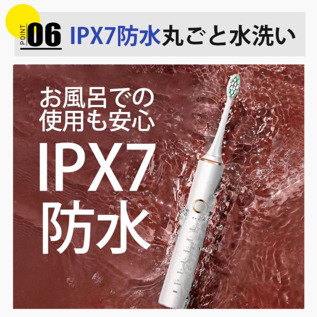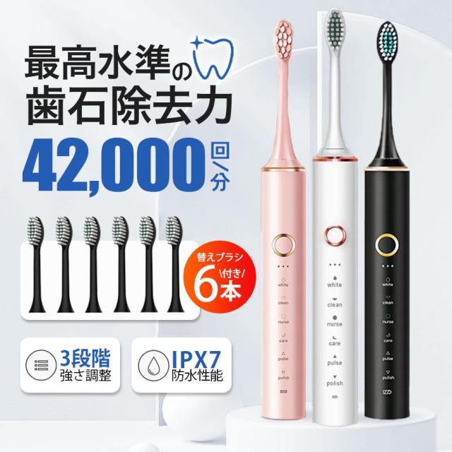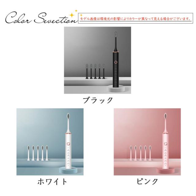 電動歯ブラシ 音波ブラシ 替えブラシ6本付き usb充電式 6モード IPX7防水 3段階調節 歯石除去 歯垢除去 歯磨き 歯間