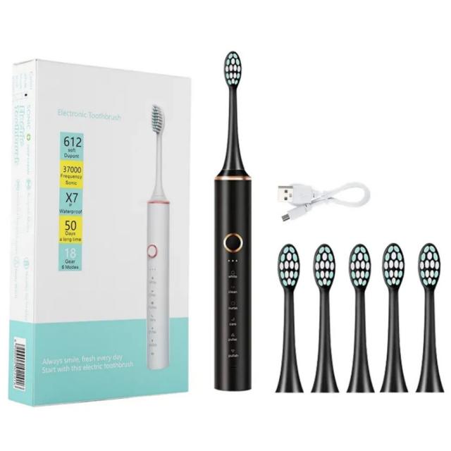 電動歯ブラシ 音波式歯ブラシ 歯ブラシ 超音波歯ブラシ 本体 替えブラシ4本付き 音波式 超音波 電動ハブラシ usb 充電式 電動 静音 強力 防水 おしゃれ 携帯 電動はぶらし 替えブラシ 歯みがき はみがき オートタイマー ブラッシング 黒 白 替歯ブラシ付き マッサージ 歯ぐきケア コンパクト 振動
