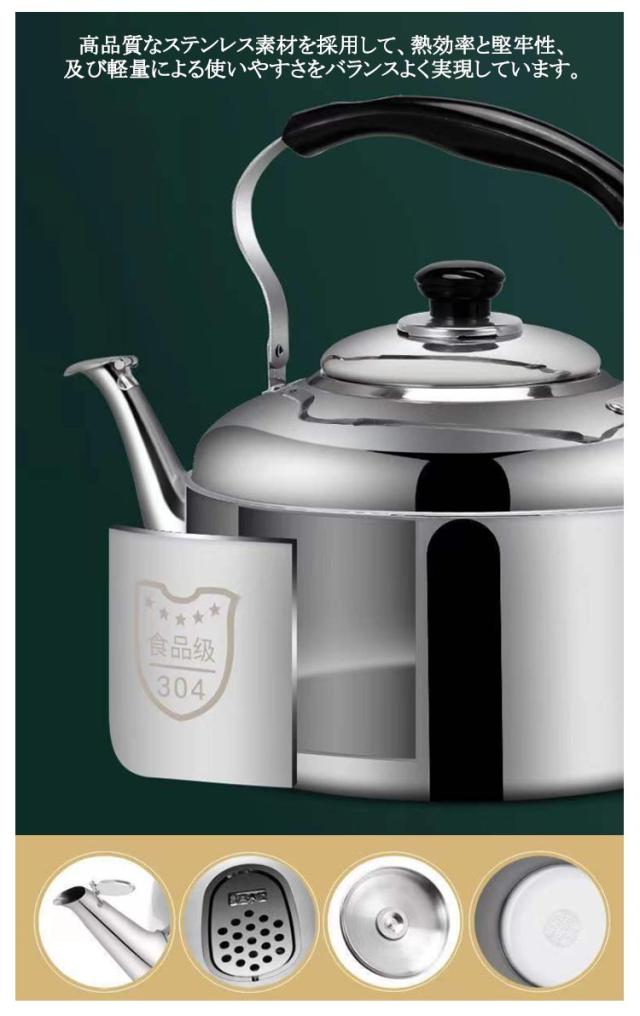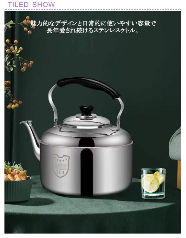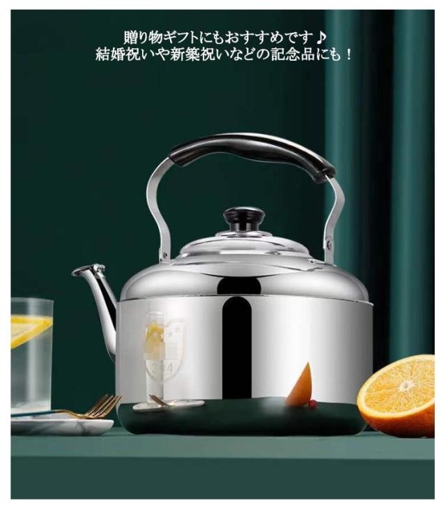 IH/直火対応 湯沸かし ケトル 広口タイプ やかん ステンレスケトル 大容量 笛吹やかん 大きめ 304ステンレス 3L 4L 5L 6L 使いやすい 湯沸し 大きい ヤカン 会社 ステンレスケトル 家庭用 やかん