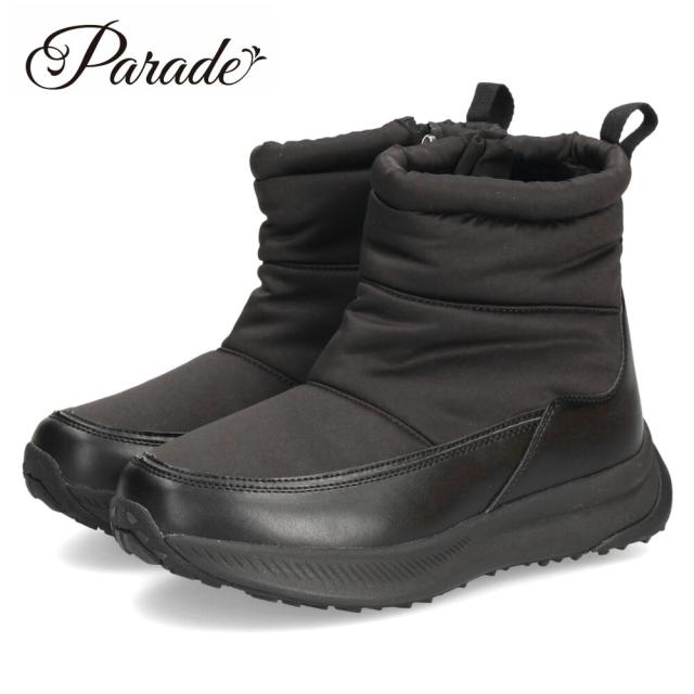 ブーツ レディース スノーブーツ ジップアップ 靴 ショートブーツ 保温 防水 撥水 防寒 防滑 黒 ブラック パレード 52912 Parade