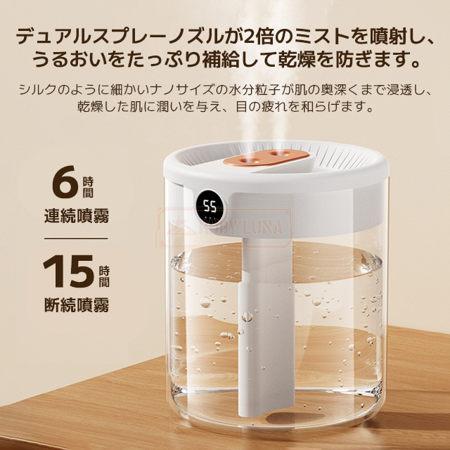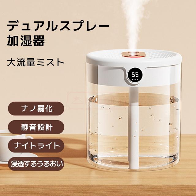 最安挑戦 冬新作 送料無料 新作 ダブルスプレー加湿器 卓上 超音波式加湿機 大容量 2L 上部給水 アロマ対応 湿度表示 ナイトライト ナノミスト 静音加湿 お手入れ簡単 ナイトライト 長時間使用 空気清浄機 乾燥対策 省エネ ダブル噴霧口