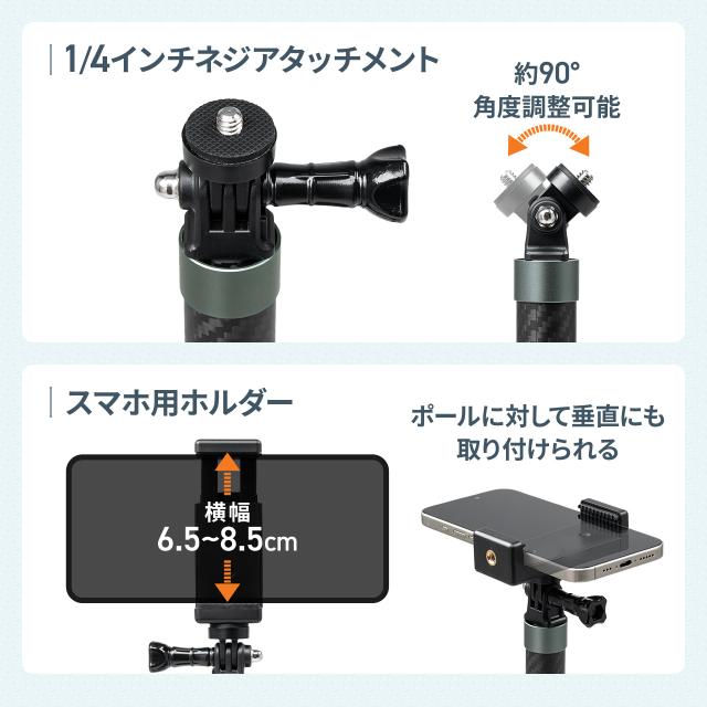 カーボン一脚 高所撮影ポール 軽量 スマホ撮影対応 最大3m[200-DGCAM047]