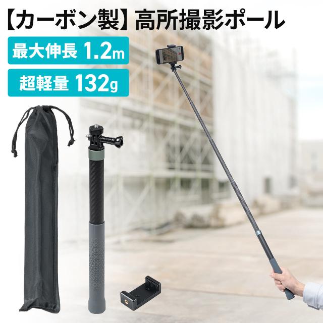 カーボン一脚 高所撮影ポール 軽量 スマホ撮影対応 最大1.2m[200-DGCAM048]