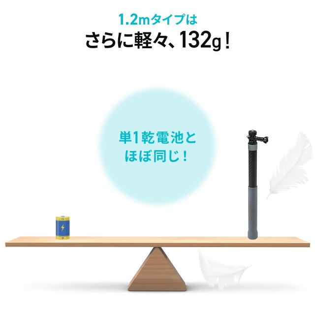 ●カーボン素材を採用することで驚くほど軽量ながらも優れた剛性を実現しています。●最大約1.2メートルまで伸ばせるロングタイプで、高所からの俯瞰撮影もスムーズに行えます。