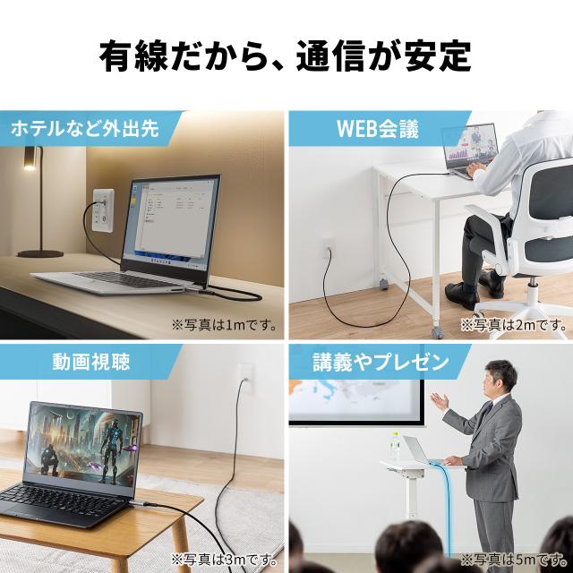 ●USB AポートをLANポート(RJ-45コネクタ)に変換するケーブルです。●LAN(RJ-45)ポートがないパソコンでも、変換アダプタなしで直接有線ネットワーク接続ができます。