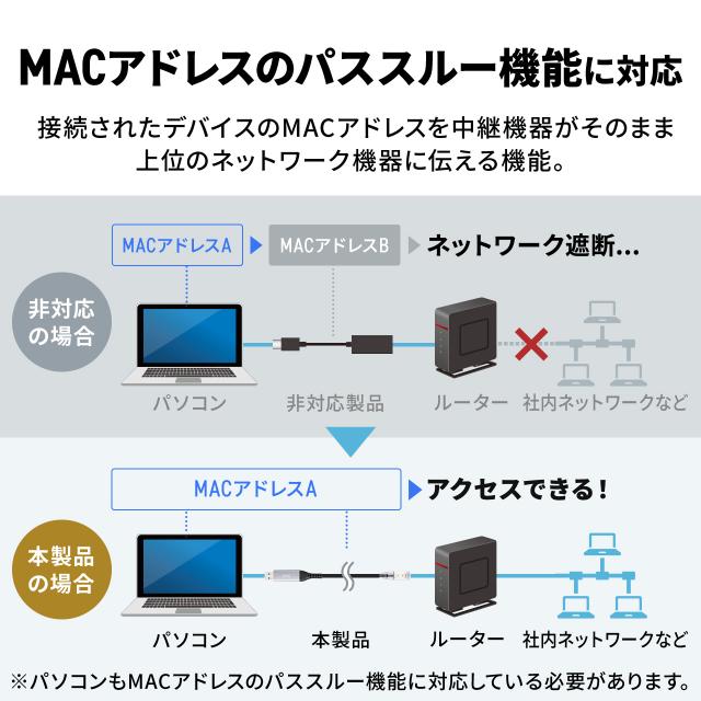 ※パソコンがMACアドレスパススルー機能に対応している必要があります。