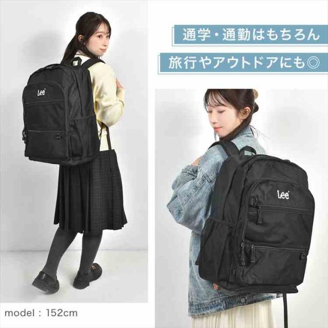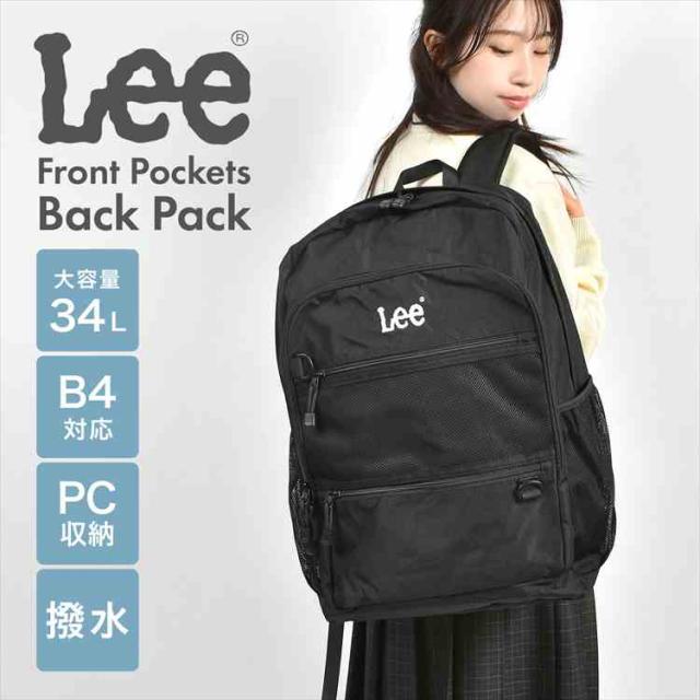 リュック レディース Lee リー 通学 リュックサック 女子 高校生 大学生 大人 黒 おしゃれ 大容量 34L シンプル 無地 A4 B4 PC ポケット 撥水 軽量 カジュアル 多機能 通学 背面 メッシュ 通学リュック チェストベルト 通勤 パックパック 多ポケット ブラック ブランド 旅行