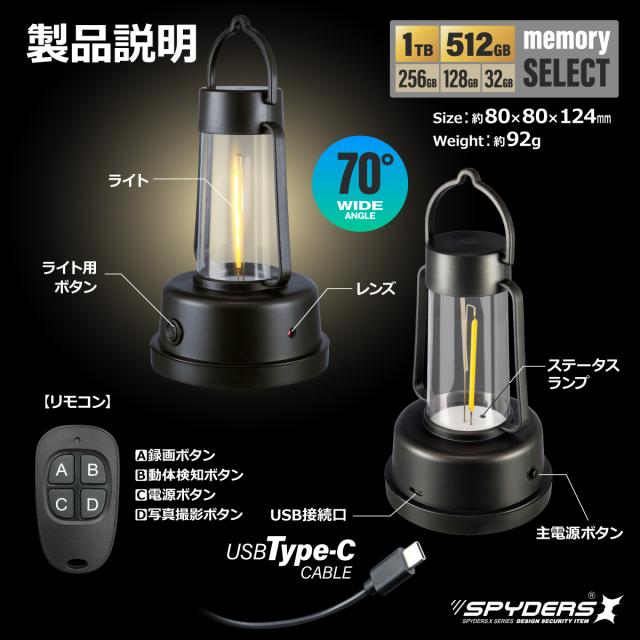 スパイダーズX ランタン型カメラ H-781 小型カメラ 動体検知 OTGリーダー 256GB内蔵