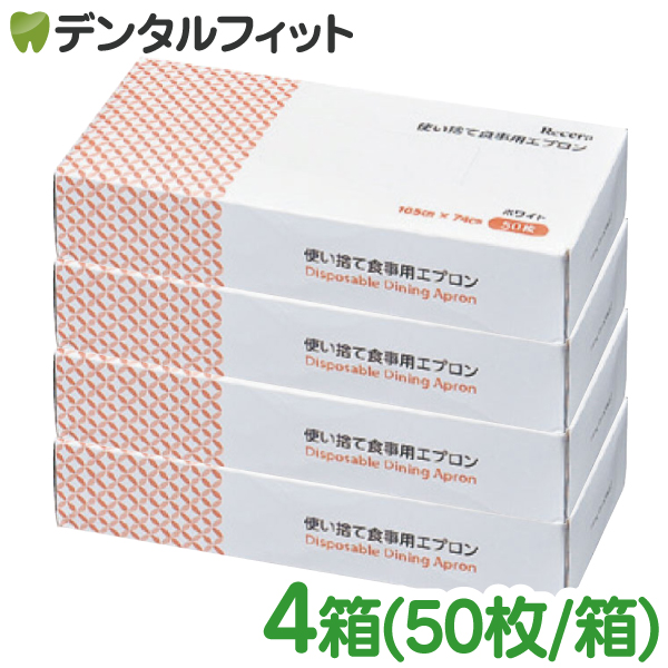 リセラ 使い捨て 食事用エプロン 4箱(50枚/箱) 2WAY タイプ 防水 エンボス加工 簡単 装着 長さ 調節 可能
