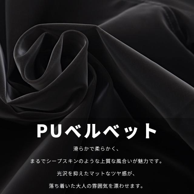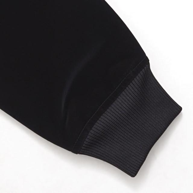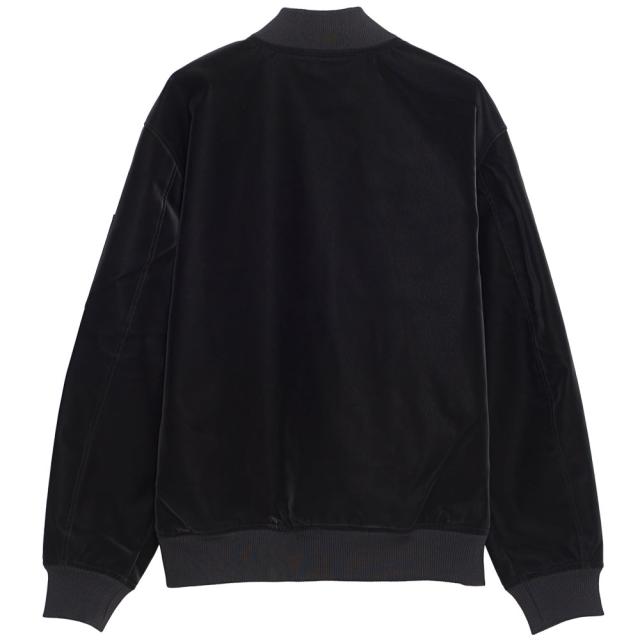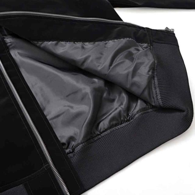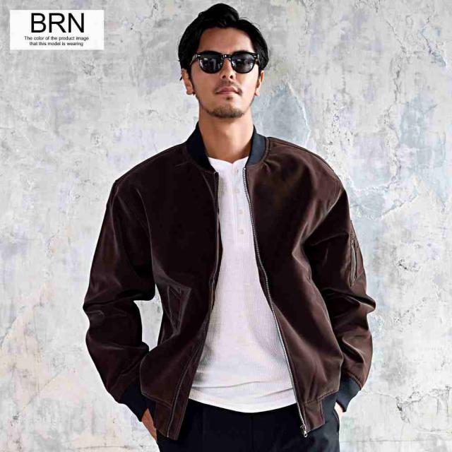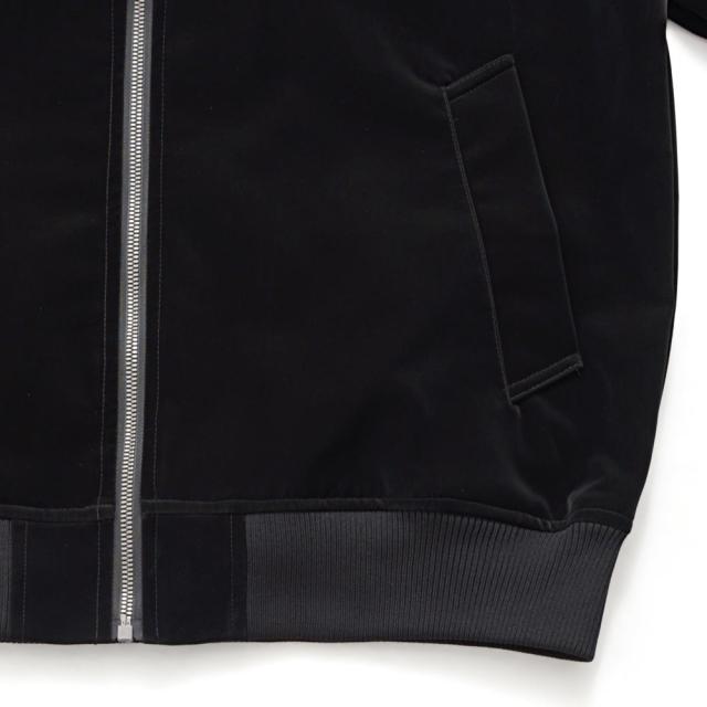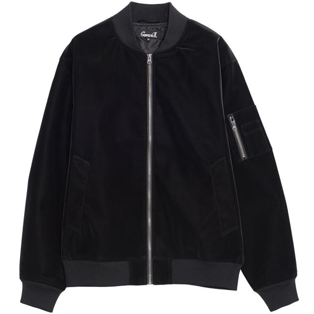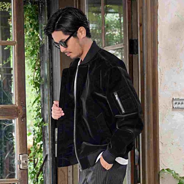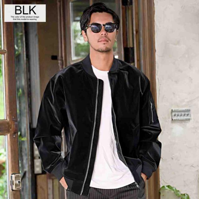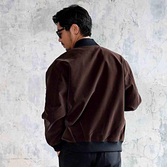 程よい厚みと光沢感のあるベルベットPU素材を使用したMA-1タイプのブルゾン。