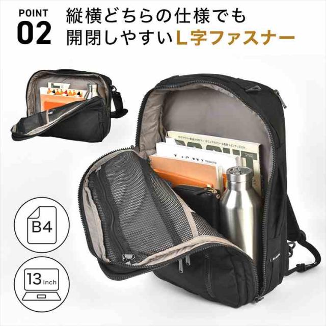 コロンビア独自のはっ水機能「オムニシールド」を採用し、急な雨にも安心。 スタイリッシュなスクエアフォルムのメインコンパートメントは、縦横どちらの向きからでも開閉しやすいL字ファスナー仕様。 内部には2つのファスナーメッシュポケットとオープンポケットを備え、整理整頓もスムーズです。 メインコンパートメント側面には13インチ対応のPCスリーブ、トップフロントポケットには便利なオーガナイザーを配置。