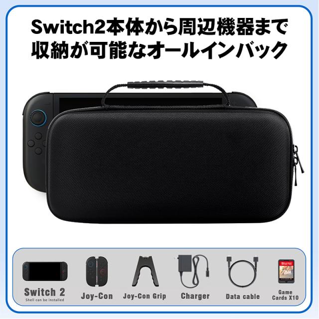 Switch2本体・Joy-Con2・ゲームカードなどのアクセサリーを1つにまとめて持ち運びに便利! 優れた保護機能と収納力を兼ね備えた収納ケースです。 【上質素材採用】 衝撃に強いEVA素材を使用したセミハードタイプです。 表面はPU張りで水に強く汚れも湿った布で簡単に落とせます。 内側は柔らかいクッション材を使用、本体固定用の伸縮性バンドもデザインの一つで ゲーム機がしっかり固定されて落下対策にもなります。 【抜群な収納力】 ゲーム機本体はもちろん、Joy-Con2も同時に収納できゲームカードも入ります 大きめのポケット付きで、ケーブルやイヤホンなどのアクセサリーの収納が容易です。 旅行先や出張先に持ち運びが便利です。 【画面保護ガラスフィルム】 ・油分や指紋汚れを防ぎます。 ・操作性の邪魔をせず、スムーズにタッチが効きます。 ・気泡の入り難いシリコンと塗膜を採用。 ・液晶画面割れを防ぎます。 ・万一割れてもガラス破片が飛び散らない |