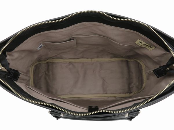 | 強燃高密度ファブリック「エビータ」を使用、ビジネス向け日本製トートバッグ 鞄生産日本一の街、兵庫県豊岡市の熟練の職人達が丁寧に縫い上げ ハンドル部分は肩かけ・手提げ兼用で使用できる長さ 着脱長さ調節可能ショルダーベルト付属、シチュエーションに応じて使い分けできる 特長はマチ(奥行)が14.5cmと大きめサイズ 長方形型のお弁当箱やタブレット・ノートパソコンなどをまとめて収納できるゆとりあるサイズ感のビジネス・トートバッグ ポケット類は数こそ多くないものの、内部にはクッション性のあるウレタン入りのタブレット収納用ポケット、前面・背面両側にはアオリポケットがあるので雑誌などすぐに取り出したい物を収納しておくのに便利です 本体生地のエビータは高密度織物のため、見た目以上に質感高く・撥水性があり・頑丈です 【注意事項】 ●画像の色と実物の色が若干異なる場合がございます ●人の手が関わっているためマテリアルの製造ロット毎に若干の色ブレが生じる事が御座います ●予告なく仕様が変わる場合がございます |