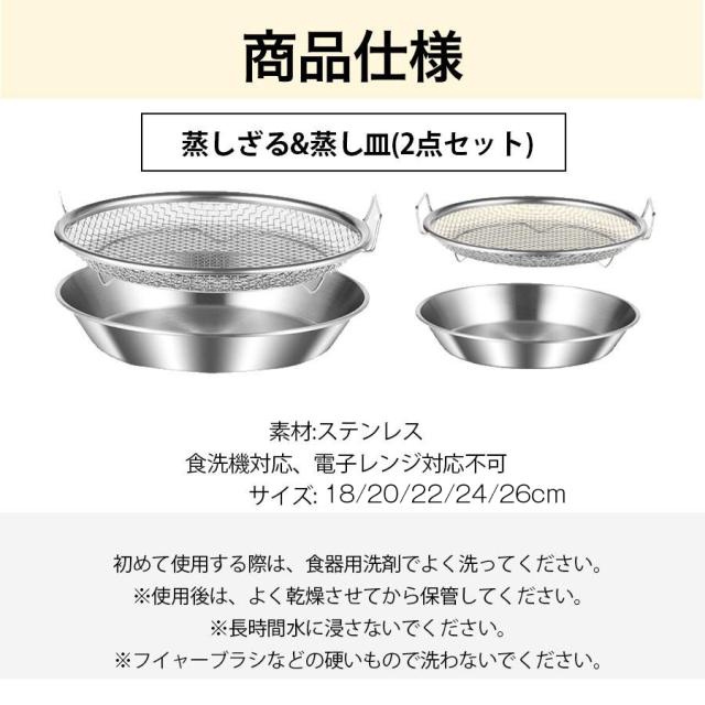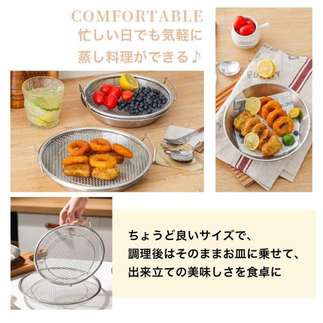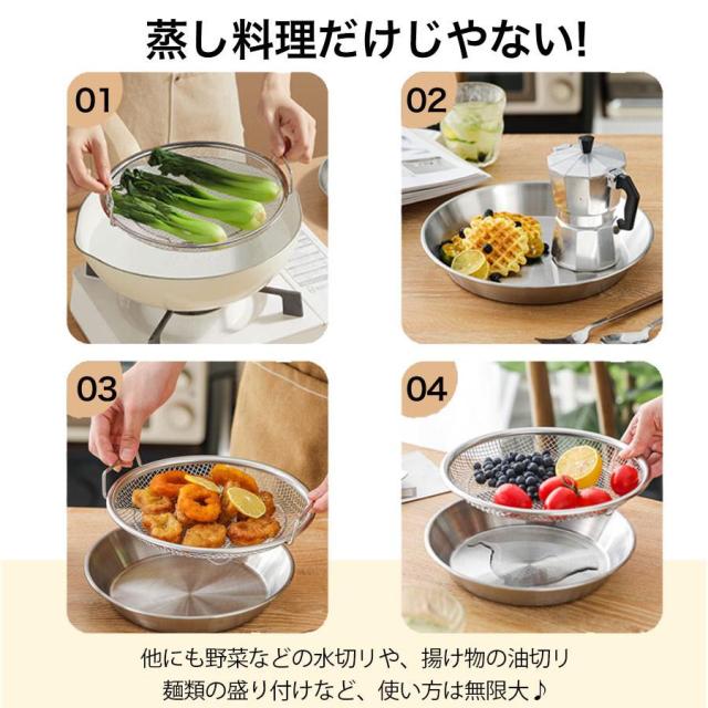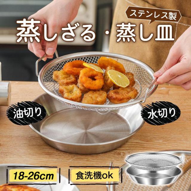 【爆売れ!】蒸しざる 蒸しかご 2点セット ステンレス 蒸し皿 18cm 20cm 22cm 24cm 食洗機対応 浅型 蒸し器 調理 油切り 蒸し野菜 蒸し台 蒸し皿 かご 網 調理 ざる 揚げ物かご フライパンで使える 多機能食 卓上 水切り 油切り キッチン用品 蒸し籠 漏れ網 調理器具