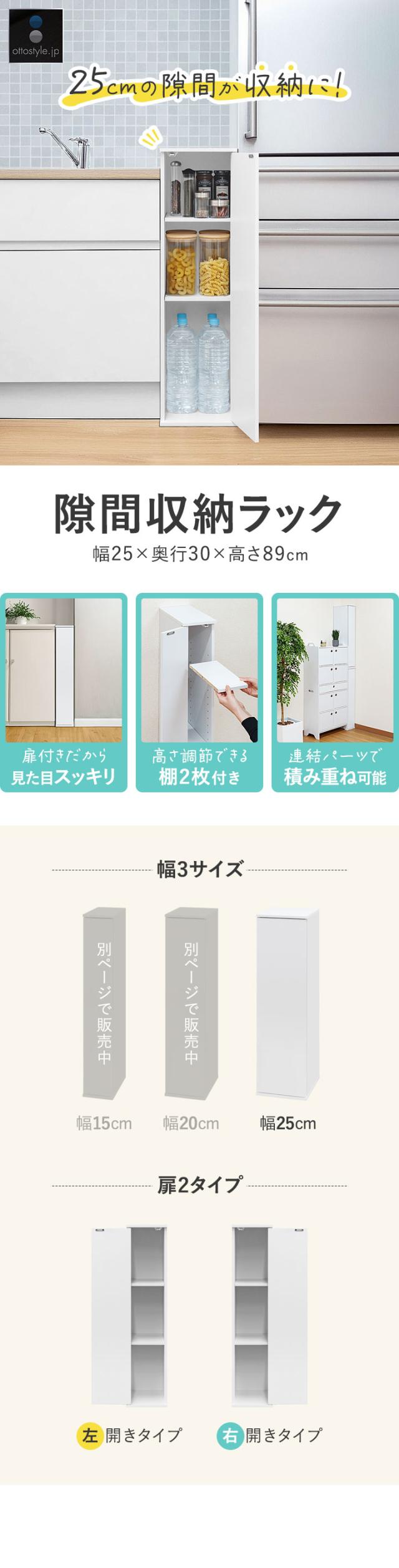 隙間収納 キッチン 25cm 扉付き 収納棚 幅25cm×奥行30cm×高さ89cm 収納ラック 3段 ロータイプ ストッカー キッチン収納 すき間収納 すきま収納 省スペース 台所 ランドリー収納 スリムラック スリムストッカー 隠す 隠せる 北欧 おしゃれ 1年保証 送料無料