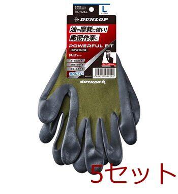 ニトリルゴム背抜き手袋 パワフルフィット ストロングデイリー L カーキ 5個セット 送料無料 即日発送