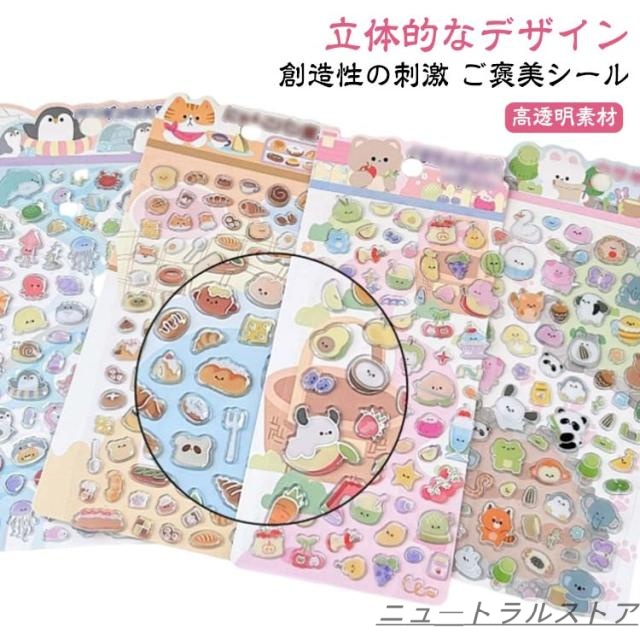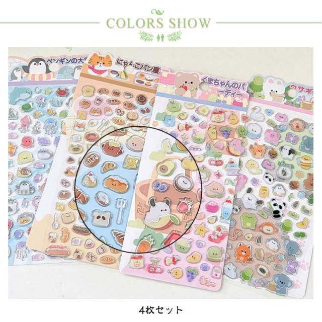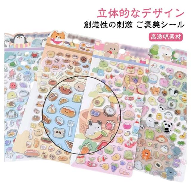 4枚セット ぷくぷくシール ご褒美シール かわいいシール 可愛い 立体 ボンドロップ シール ぷっくり 装飾用 ごほうびシール DIY用 手帳 ステッカー アルバム スマホケース飾り キラキラ 子供 デコシール 幼児用3Dシール 手帳ご褒美シール 日記シール 送料無料