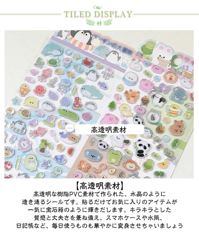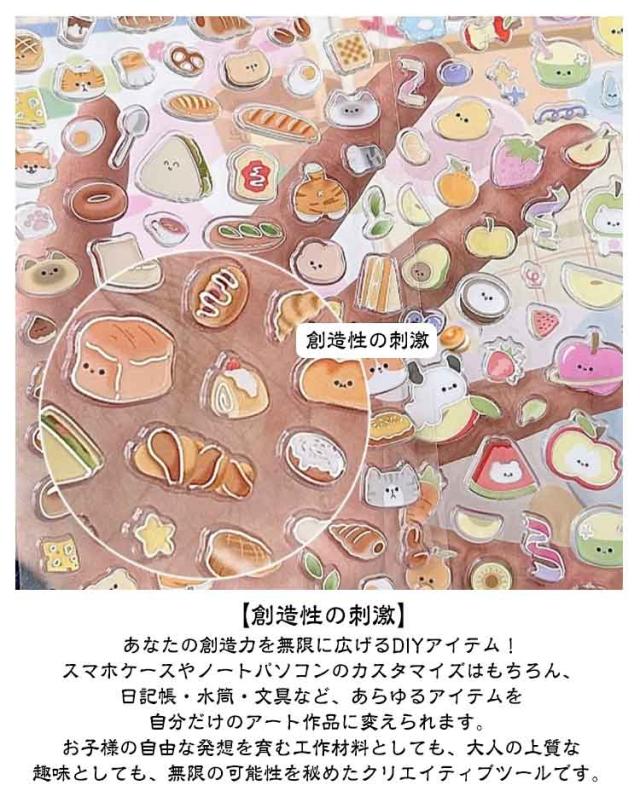 | 【立体的なデザイン】ぷっくりとした立体造型が可愛いシール! 指で触れるたびに感じるふくらみと、色あせない鮮やかさが特徴です。お子様の持ち物に貼れば愛着が湧くのはもちろん、大人の上品な小物デコレーションにもぴったり。水に強く剥がれにくいので、長く楽しめる逸品です。 【高透明素材】高透明な樹脂PVC素材で作られた、水晶のように透き通るシールです。貼るだけでお気に入りのアイテムが一気に宝石箱のように輝きだします。キラキラとした質感と丈夫さを兼ね備え、スマホケースや水筒、日記帳など、毎日使うものも華やかに変身させちゃいましょう 【創造性の刺激】あなたの創造力を無限に広げるDIYアイテム!スマホケースやノートパソコンのカスタマイズはもちろん、日記帳・水筒・文具など、あらゆるアイテムを自分だけのアート作品に変えられます。お子様の自由な発想を育む工作材料としても、大人の上質な趣味としても、無限の可能性を秘めたクリエイティブツールです。 【ご褒美シール】お子様の頑張りを可愛く褒める、ご褒美シールに最適!子どもたちが良い行いをしたときに、ご褒美としてステッカーを与えると、子どもたちの自信が高まり、良い行いをするための動機付けになります。 | |