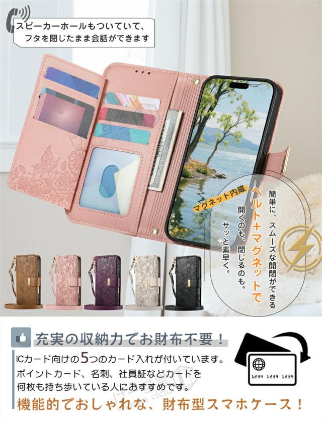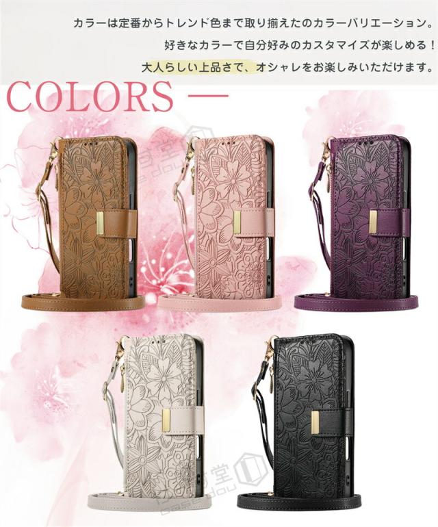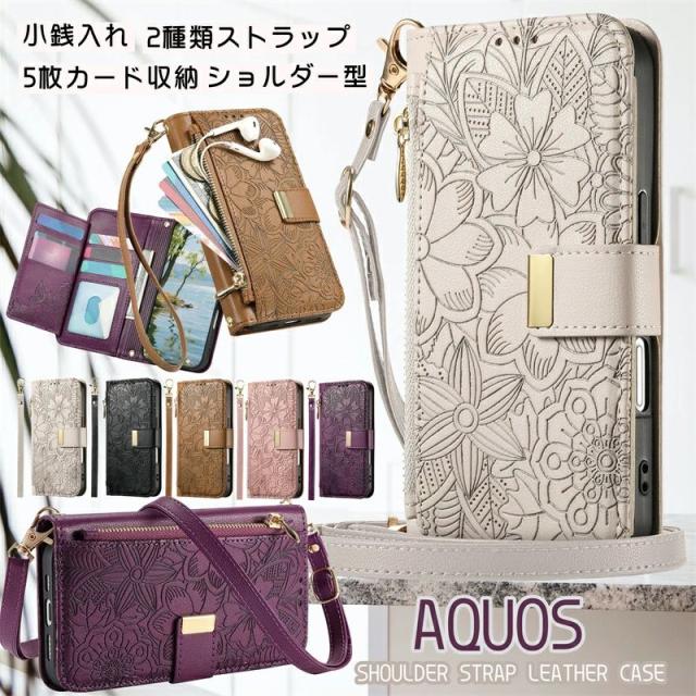 スマホケース手帳型 AQUOS sense10 R10 sense9 スマホショルダー AQUOS wish4 ケース 耐衝撃 コインケース 携帯ショルダー ストラップ 付き AQUOS wish5 sense9 sense8 wish4 wish3 センス9 携帯ケース ショルダー お財布付き フラワー 花柄 おしゃれ 韓国 ファスナー付き