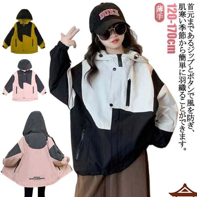 マウンテンパーカー キッズ ウィンドブレーカー 子供服 女の子 アウター フード付き ジャケット スタジャン 春物 防風 春コート 薄手 ジップアップ トップス 切り替え お洒落 ブルゾン ガールズ ジャンパー カジュアル 運動着 120 130 140 150 160 170 送料無料