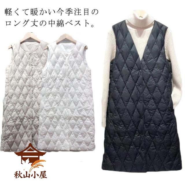 ダウンベスト ロング レディース 中綿ベスト Vネック ロングベスト 中綿 キルティングベスト キルトベスト 秋冬 軽量 薄手 防寒 保温 あたっか 暖かい ライトダウン インナーダウン ベスト コートイン 大きいサイズ 大人 30代 40代 50代 60代