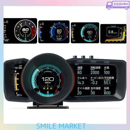 GIGC 車用ヘッドアップディスプレイ、スピードメーター、タコメーター、水温計、GPS+OBD2モード 3画面連動マルチメーター HUD 故障診断・警告機能付き(日本語版)